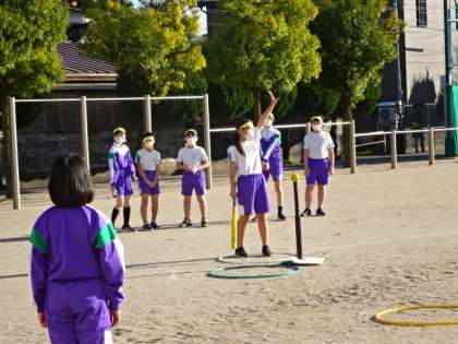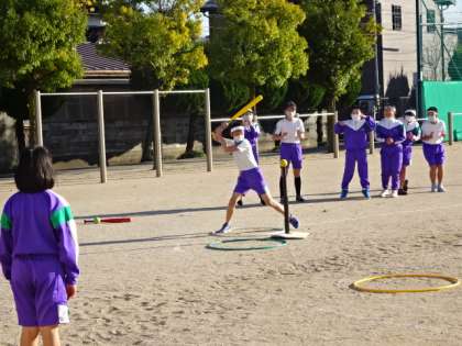 5年生のTボールのゲーム。同点だったので、一人だけが打つ、延長戦に入りました。なんと、そこでも・・・