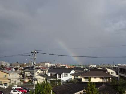 今日は、雨が降ったり、日が差したりしていたので、虹が何度も出ていました。これは、2時ではなく、9時の虹です。
