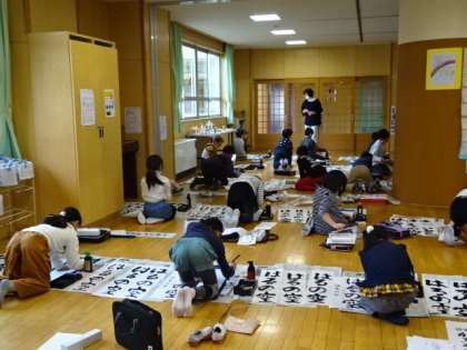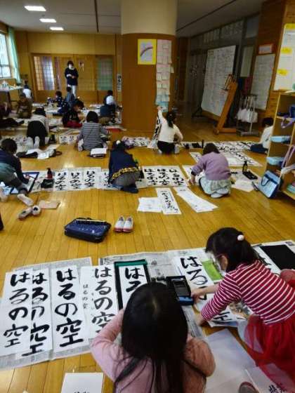 3年生は、今年度の書初めで、「はるの日」という文字を書きます。