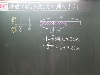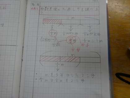 分数の学習です。ノートにきれいに書いてあると、分かりやすいね。