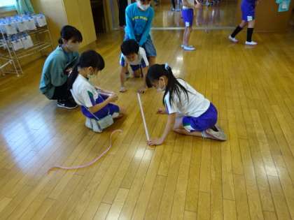 テープを使って、分数の学習です。等分するのには、どうすればよいか、やってみよう!