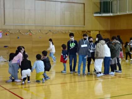 1年2組と6年1組が交流会をしています。1年生はもちろん、6年生も楽しそうです。