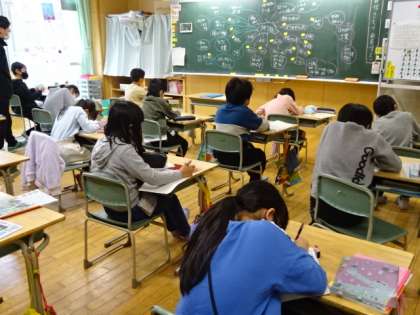 2学期をみんなで振り返っています。どれだけ成長できたかな。