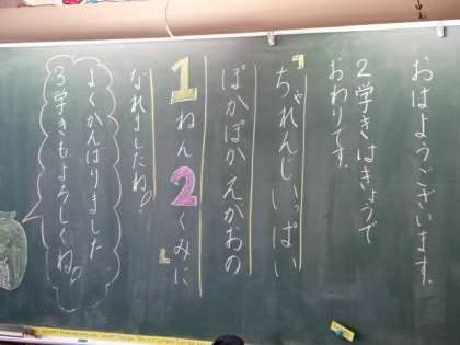 2学期の終わりに、子供たちへのメッセージが黒板に書かれていました。