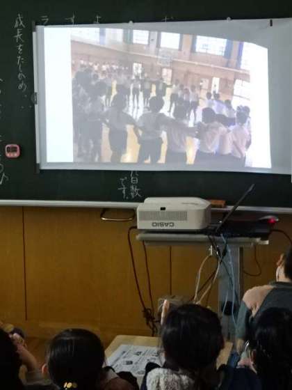 長かった2学期をプレゼンを見ながら、みんなで振り返っています。私たち、成長したかなあ。