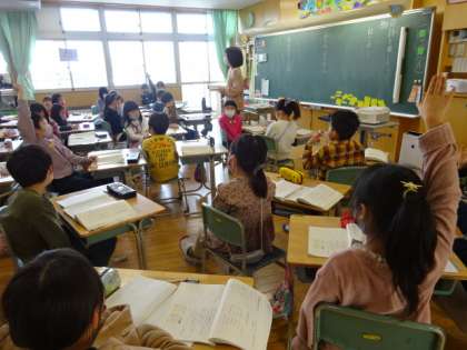 「詩を楽しもう」ということで、どんな様子なのか、自由に話し合っています。