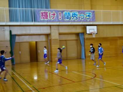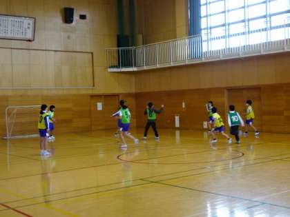 ハンドボールの学習です。寒さに負けず、ナイスシュートやナイスセーブが連発していました。