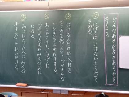 「おにごっこ」という文。教科書をしっかり読んで、どんなあそび方があるかを考えよう。