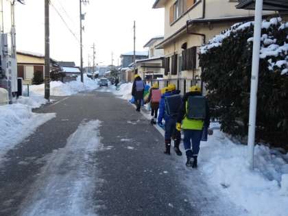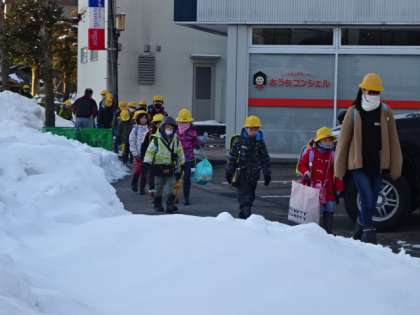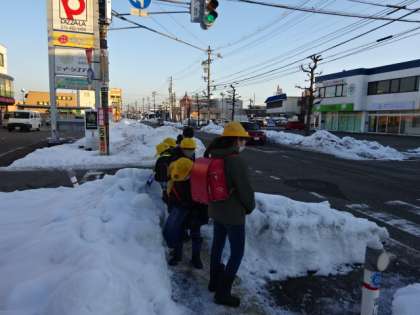 今日の朝は、昨日よりも冷え込みました。子供たちは転ばないように慎重に歩いて登校してきました。