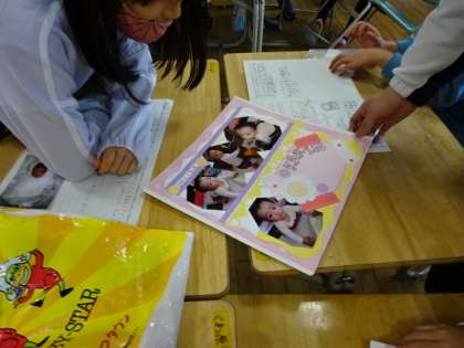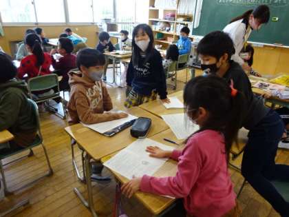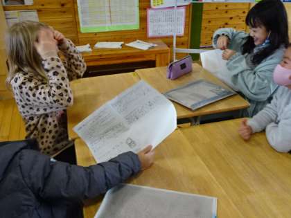 「自分がお母さんのお腹の中に時の様子を話そう」ということで、グループで話し合っています。どことなく、照れくさそうです。