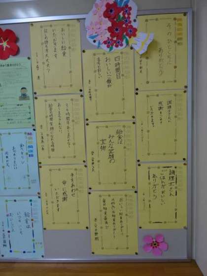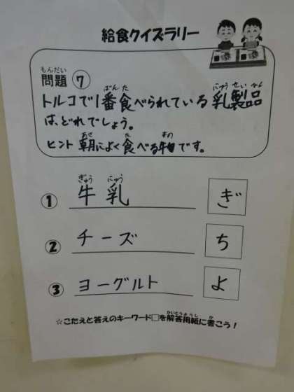 今週は給食週間ということで、クイズや標語等、いろいろなことが企画されています。