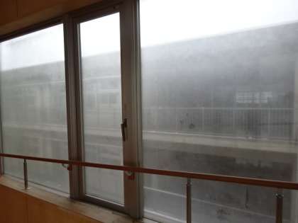 寒さが戻ってきました。廊下の窓も白くくもっています。天候が荒れなければよいのですが・・・。