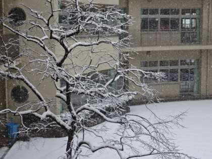寒さが戻ってきました。廊下の窓も白くくもっています。天候が荒れなければよいのですが・・・。
