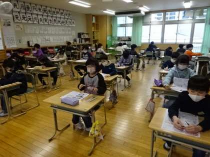 答え合わせをしているクラスとテストをしているクラスです。がんばれ!