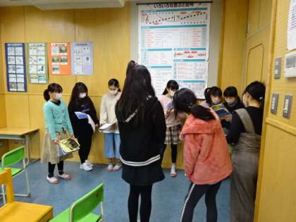 3つのグループに分かれて、歌の練習です。負けてなるものか!