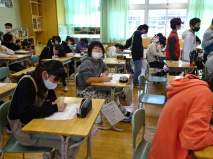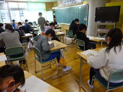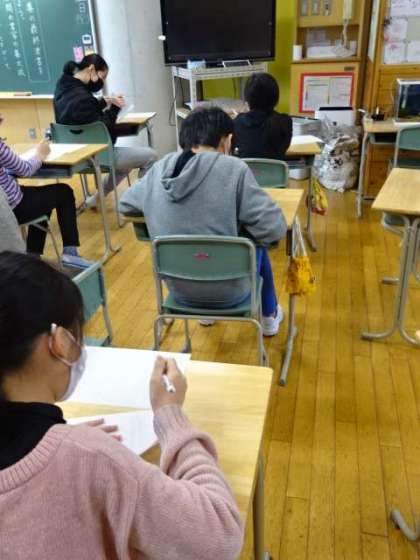 卒業アルバムに載せる、思い出の作文を清書しています。一生残るものですから、集中しています。