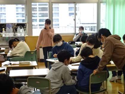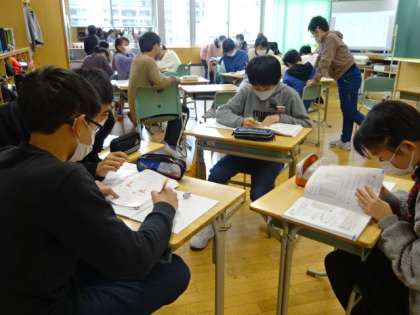 算数のまとめをしています。分からないことはグループで教え合っています。