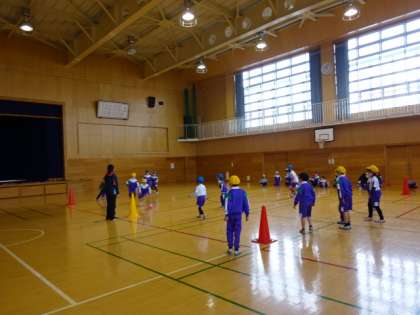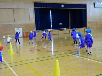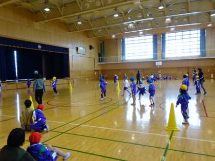 ころがしドッヂボール。コートの大きさもだんだん大きくなってきました。