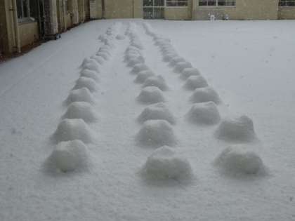中庭に置いてある鉢も、またすっかり雪におおわれました。