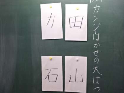 カンジーはかせの大発明です。「田」と「力」が合わさるとどんな漢字になる?