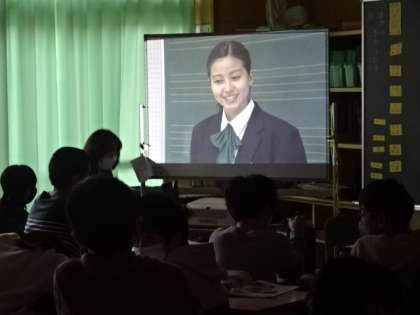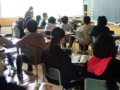 今日の学習は、「中学校生活や将来について聞こう」というテーマです。中学生のスピーチがモデルになります。