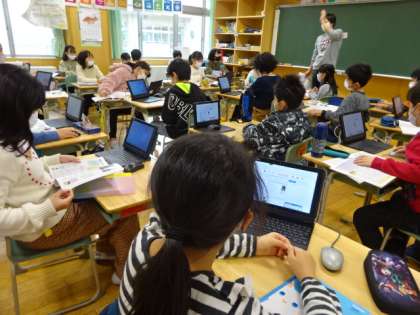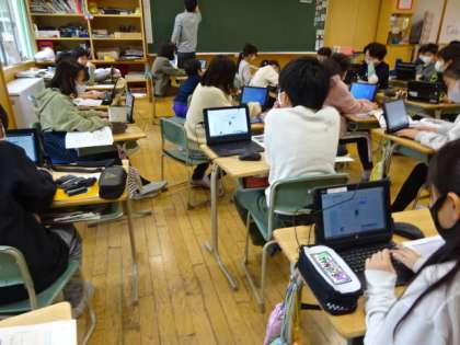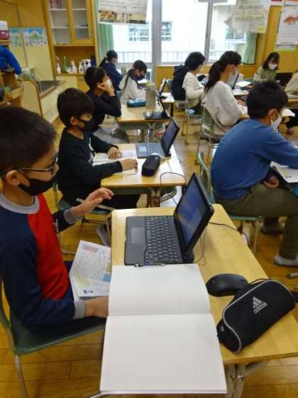 教室で一人に一台、パソコンが使えるようになりました。早速、授業の中で取り入れてみています。