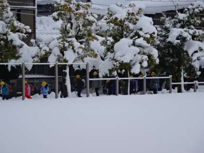 昨日は臨時休業をしましたが、今日から学校再開です。朝は寒かったですが、雪は降っておらず、子供たちは元気に登校してきました。