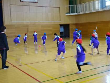ころがしドッヂボール。みんな素早い動きになってきました。