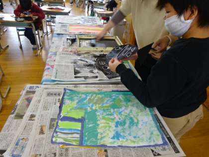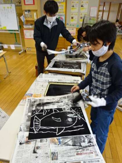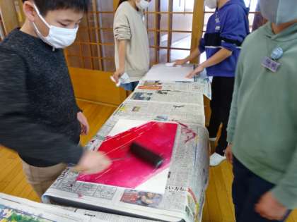 版画に取り組んでいる学年は、どの学級も「刷り」に入っています。どんな出来映えになるかな?
