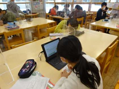 本で調べている子供もいれば、パソコンで調べている子供もいます。目的に合った調べ方ができるようになるといいね。