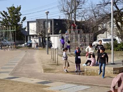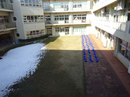 先週の大雪がうそのように、温かい日が続いています。中庭の日かげにはまだ雪が少し残っていますが、春のような陽気です。業間の休み時間には、外に出て元気よく遊ぶ子供もいました。