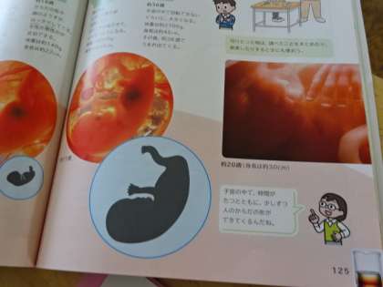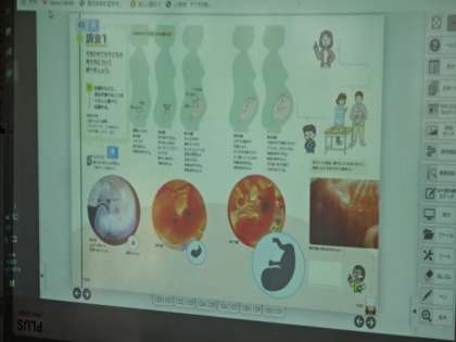 自分たちは、お母さんのおなかの中でどのように大きくなってきたのかを学習しています。