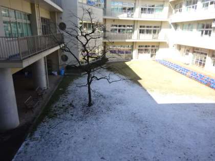 あれっ、昨日の夕方降った雪がまだうっすらと残っています。