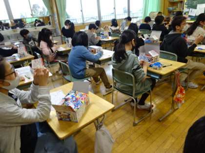 50回巻きのコイルを作っています。これに電池をつなげば、電磁石ができるはず・・・