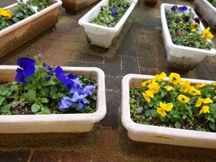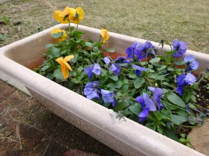 まだ寒い日もありますが、プランターの花もきれいに咲いています。