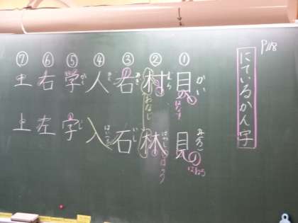似ている漢字を学習しています。特に、「人」と「入」は似ていますね。