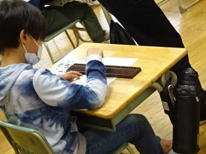 そろばん教室です。講師の先生から、そろばんの使い方を習っています。