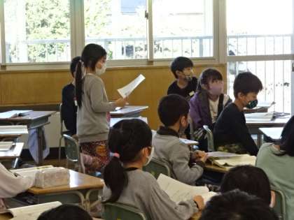 物語文を場面ごとに読み取っています。場面を想像しながら読み取っています。