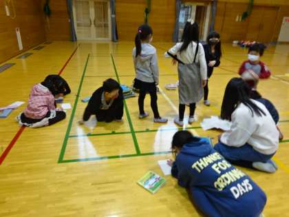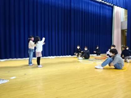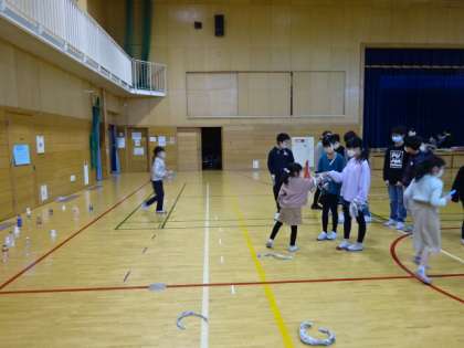 1年生と6年生が体育館で楽しい交流活動をしました。笑顔があふれていました。
