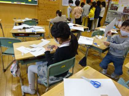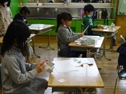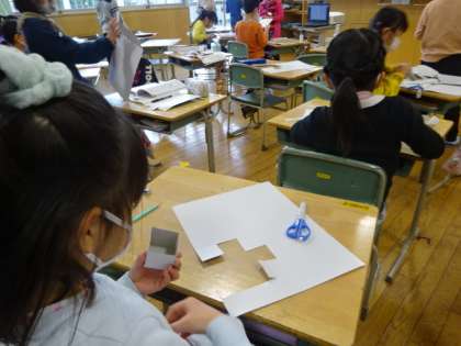 いろいろな箱の形を作っています。どんなふうにすると箱の形が作れるかな?