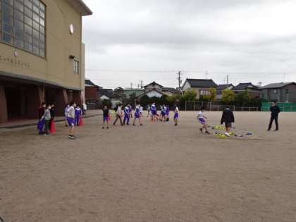 久しぶりのグラウンドでの体育です。やっぱり外は、気持ちいいね。
