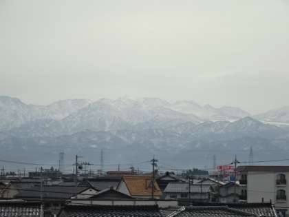 予報では、今日は花粉が多く飛散するとか・・・。気のせいか、立山連峰も何となくかすんで見えます。