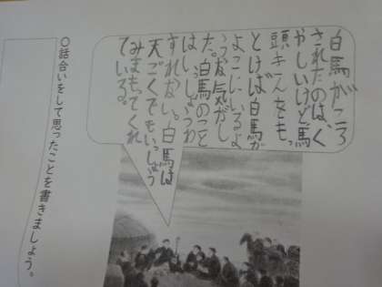 物語文で、自分が心を動かされたところを紹介し合っています。