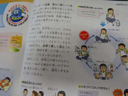 保健の授業です。薬物乱用は、全体にやめよう!だまされてはいけません。