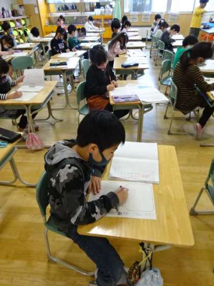 「いいこといっぱい 一年生」下書きが合格したら、清書だ!