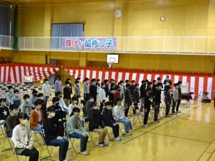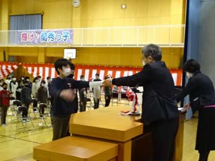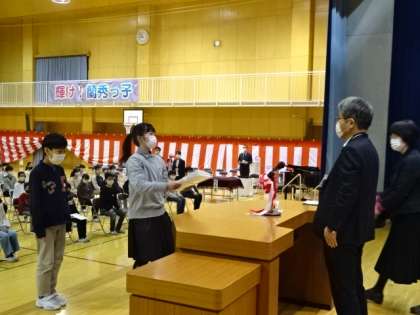 6年生は修了式を行いました。学級の代表が修了証をもらいました。