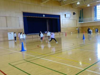 楽しくドッヂボール大会だ!先生も参加しているぞ。