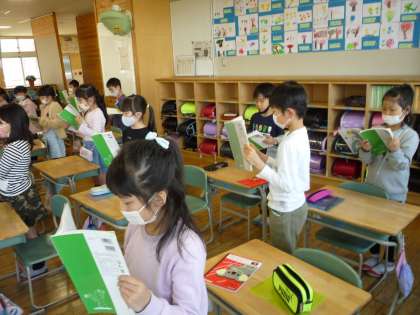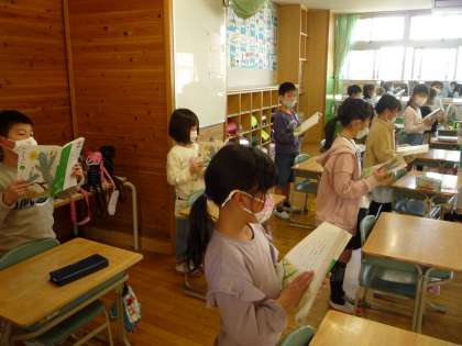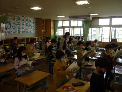 「ふきのとう」の音読練習です。声の大きさや強弱に気をつけて、工夫しながら練習しています。