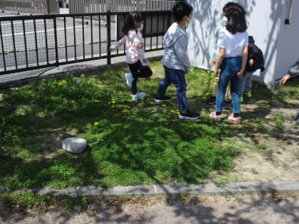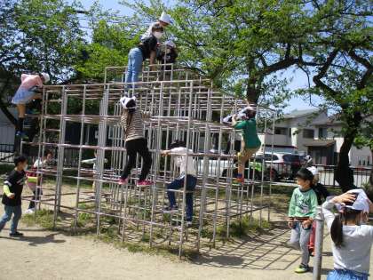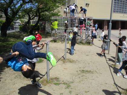 鉄棒をしたり、鬼ごっこをしたり、植物を探したりと、思い思いの過ごし方を楽しんでいます。