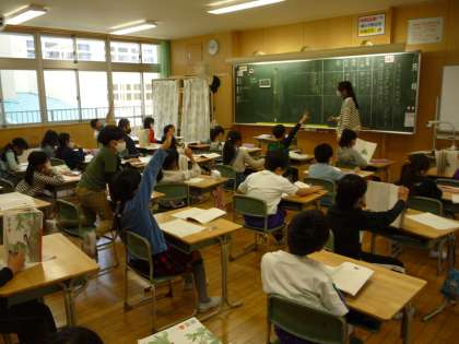 「きつつきの商売」の学習では、場面の様子やきつつきの親子の様子について、話し合っています。